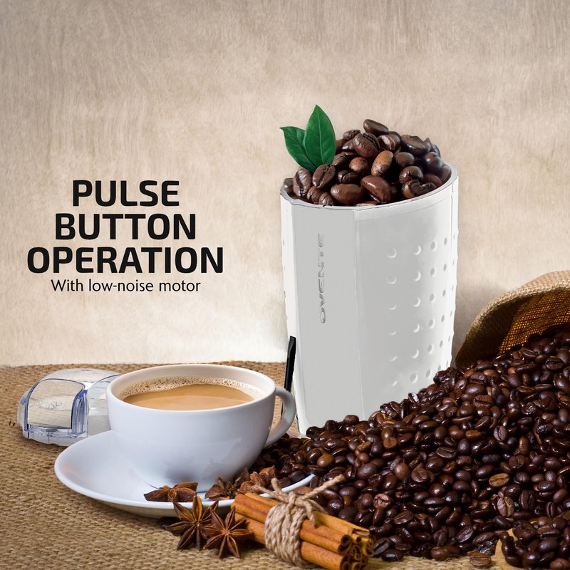 OVENTE Electric Coffee Grinder - Small Portable & Compact Grinding Mill with Stainless Blade for Bean Spices Herb and Tea, Perfect for Home & Kitchen - White CG225W