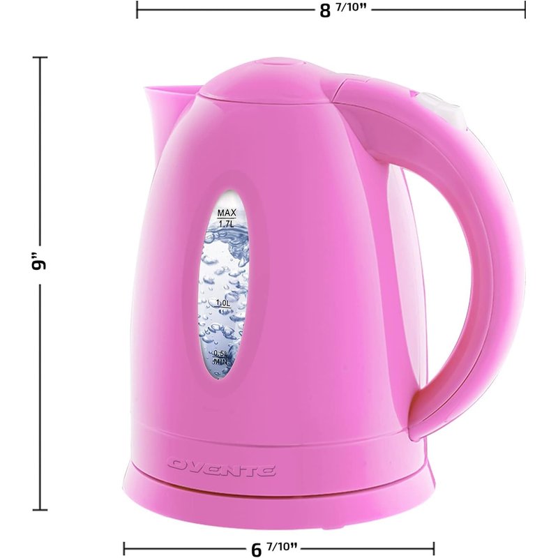 OVENTE Electric Kettle, Hot Water, Heater 1.7 Liter - BPA Free Fast Boiling Cordless Water Warmer - Auto Shut Off Instant Water Boiler for Coffee & Tea Pot - Pink KP72P
