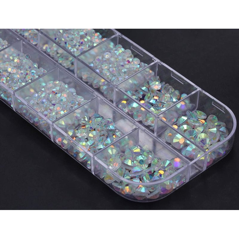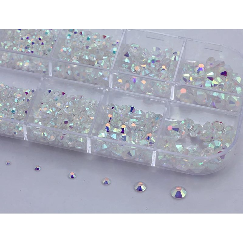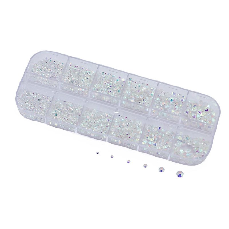 Over 2100 Pieces Transparent AB Flat Back Glass Rhinestones Crystals For Nail Art Kit 6 Sizes (1.4mm - 4.8mm)