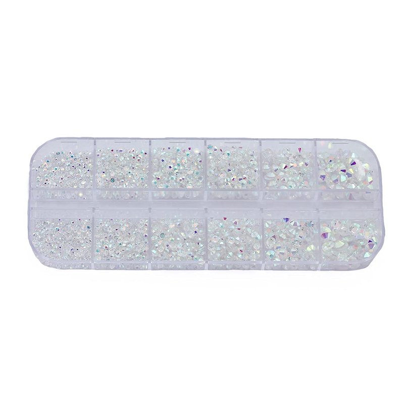 - Allstarco's Over 2100 flat back tiny glass rhinestone kit comes in 6 different sizes which are perfect for your nails!