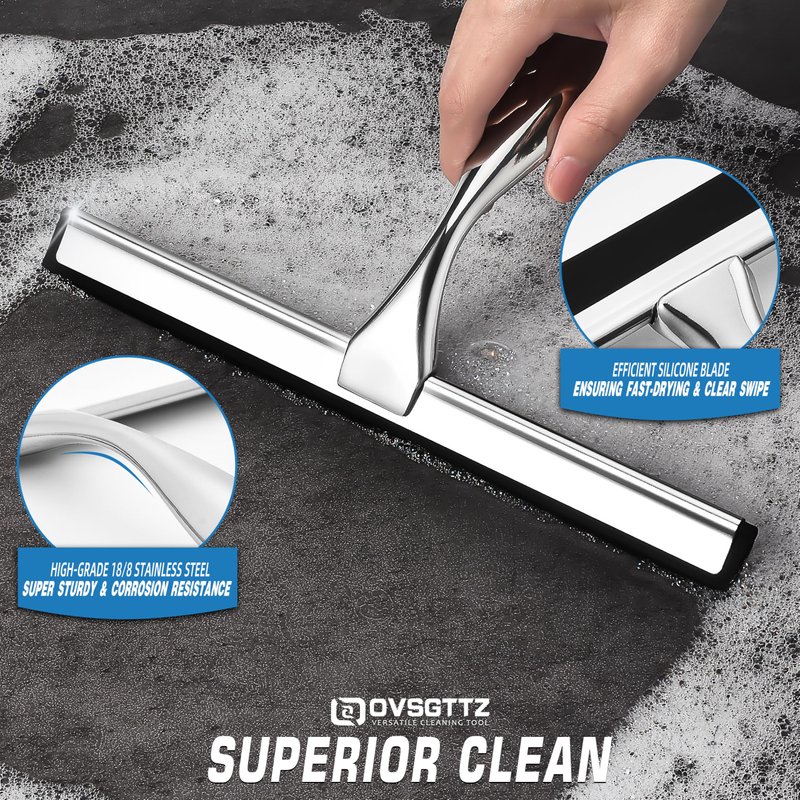 - Crystal Clear Results: The OVSGTTZ squeegee for shower glass doors is designed to effortlessly remove water drops, soap scum, and other buildups from your shower glass door cleaner and other surfaces. With just a few wipes, achieve a pristine clean without any streaks or squeaks, making your cleaning tasks fast and easy.