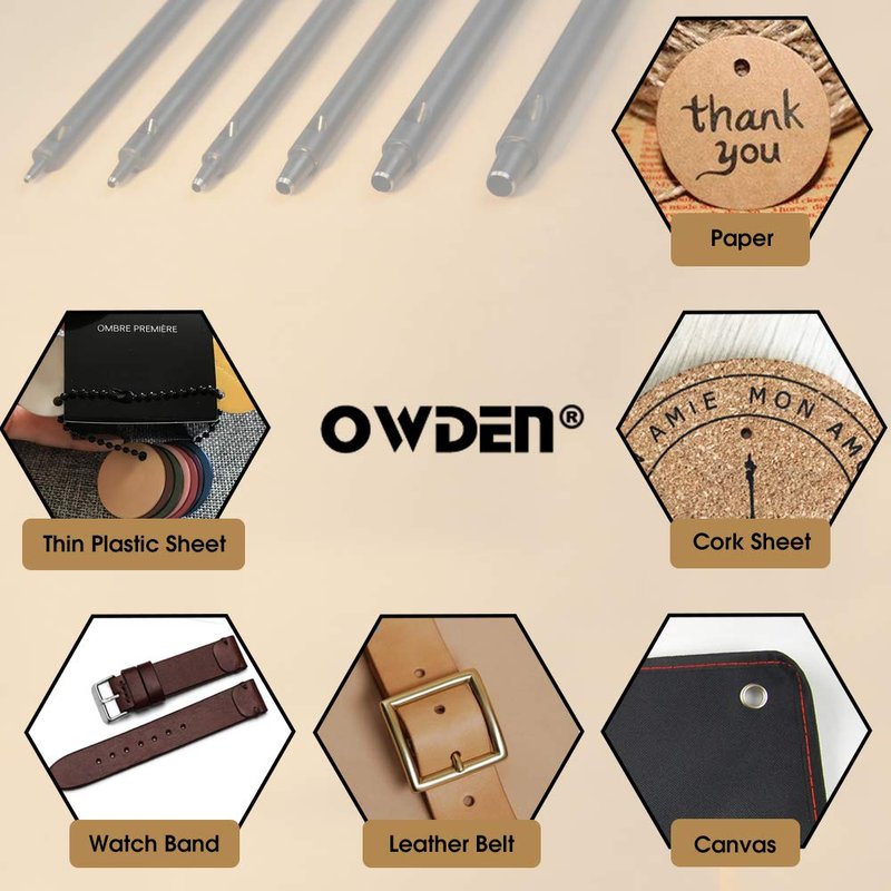 - OWDEN Professional 6Pcs.leather hollow punch set, This Tool has a slim design to better maintain the verticality and smooth for the leather hole.