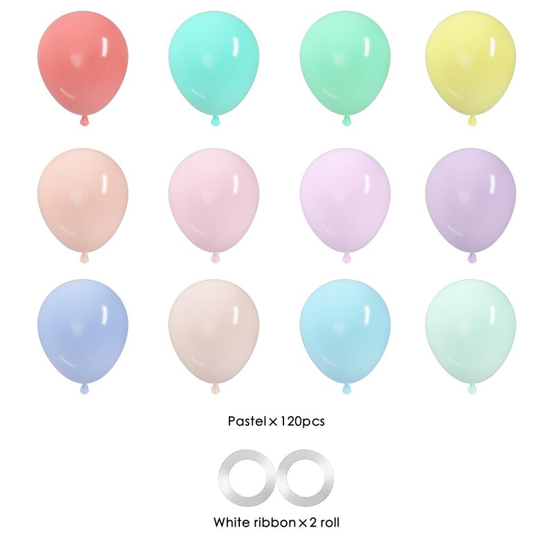 - PREMIUM BALLOONS - The balloon kit includes 120 pcs 12-inch balloons in pastel,with 2 roll 32ft pastel ribbon.