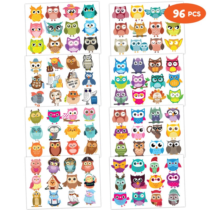 - 🦉【PERFECT TATTOOS FOR THEMED OWL DECORATIONS】: Owl temporary tattoo stickers include 8 sheets in total. There are 96Pcs super cute tattoo differences. Perfect for giving out party favors and holiday theme small gifts. The size of each sheet is 6.1 * 3.1 inches. One size fits kids.