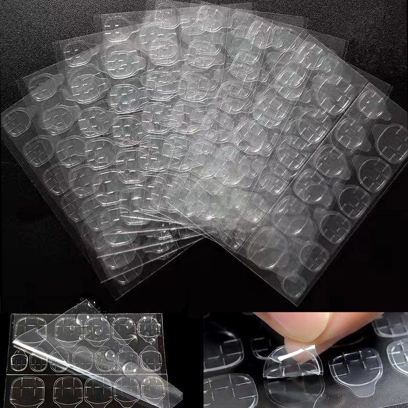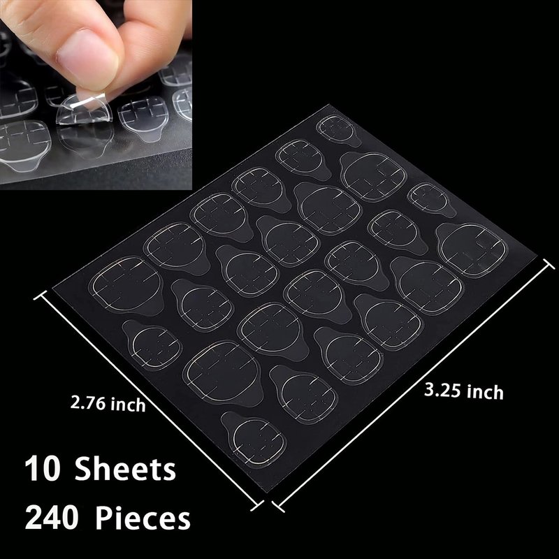 OwlkOrmy Thin Breathable Adhesive Tabs Fake Nail Glue Sticker 10 Sheets Super Sticky Double Sided Tips (Germany Jelly Gel) Flexible for Acrylic False Nails Manicure Tape (Clear 240 pcs)