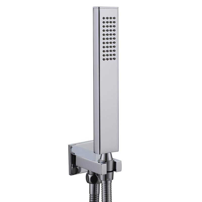 Ownace Square Solid Brass Chrome Hand Held Shower Head With Wall Connector and Hose Set