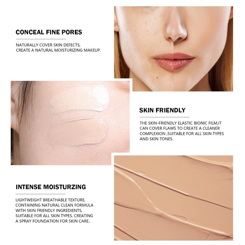 - 【Clean and Natural】Lightweight breathable texture, containing natural clean formula with skin friendly ingredients, suitable for all skin types, creating a spray foundation for skin care.