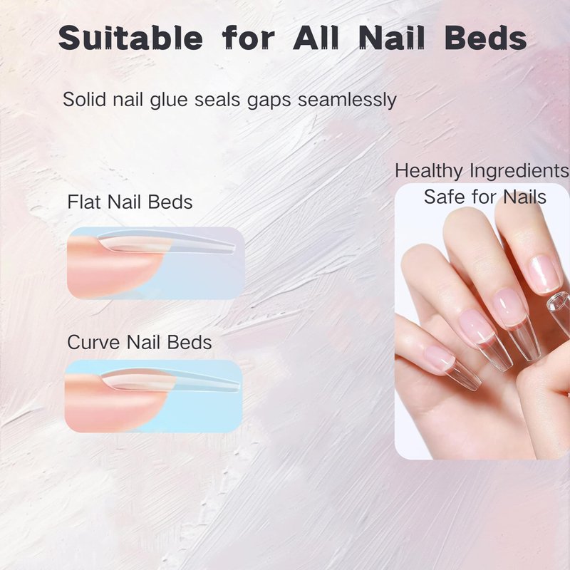 Long-Wear & User-Friendly :The solid nail glue gel feels like rubber, gentle on nails, non-drippy, and easy to handle. UV-curable for strong adhesion, it's repositionable before setting and lasts beautifully for weeks with proper use.