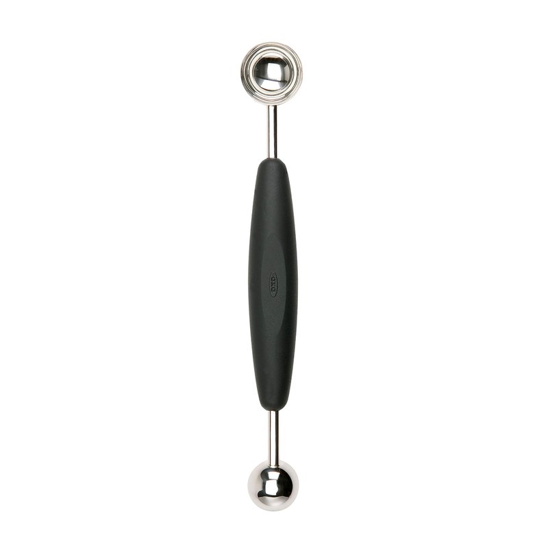 - Durable, double-sided stainless steel scoops are perfect for fruit and veggie prep