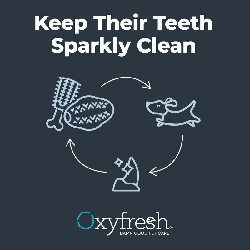 - GOODBYE, BOREDOM – Enhance playtime & encourage chewing by adding peanut butter or Oxyfresh Pet Toothpaste to the ridges of the dog dental toy. Or stuff your pup’s favorite treats inside the hollow center, turning dental care into a tasty reward. Easy to clean & dishwasher safe.