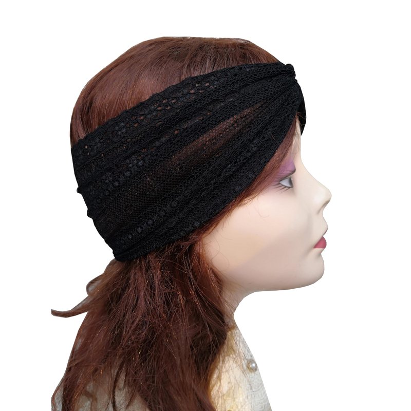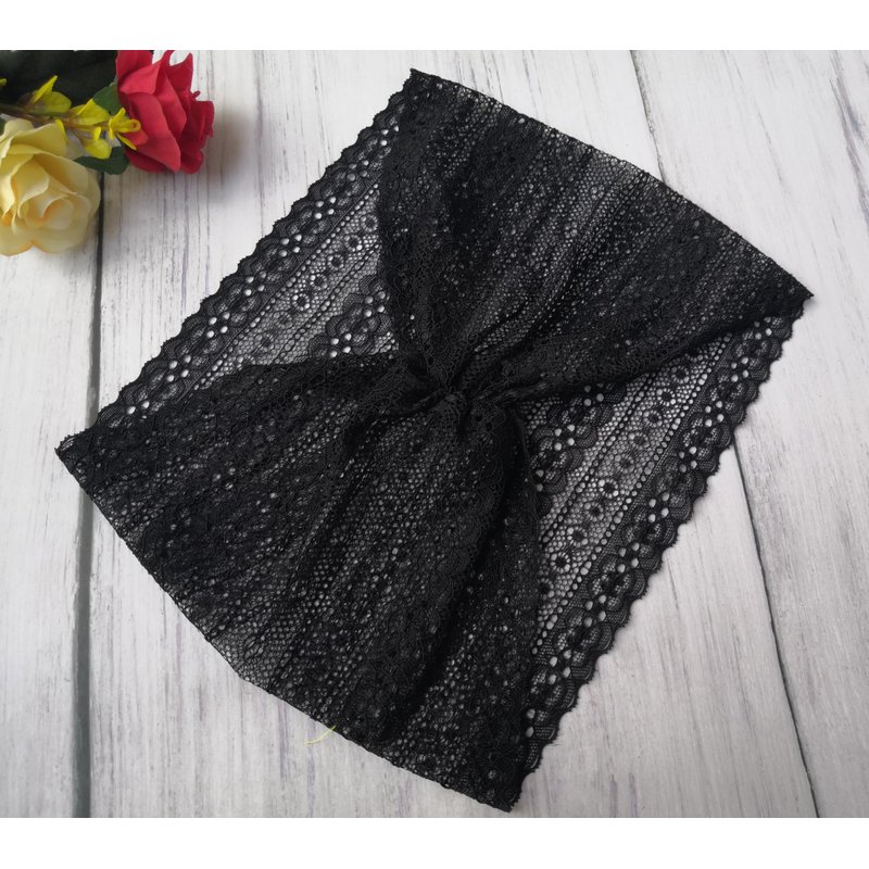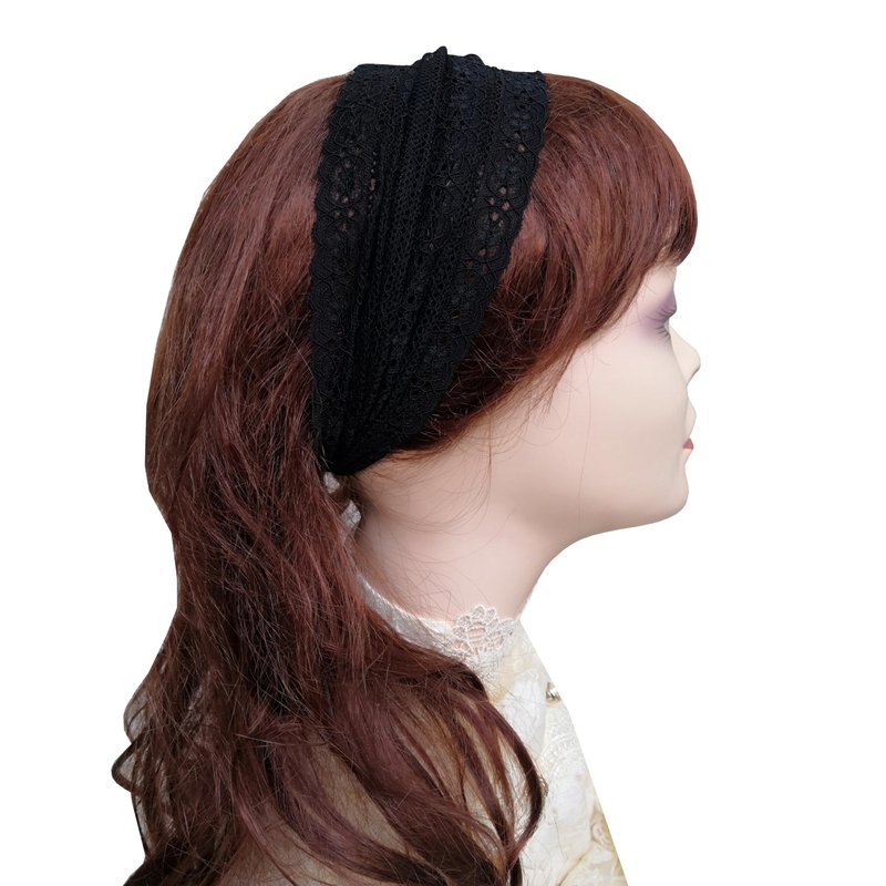 Oyabridal 7.6'' Wide Lace Headband for Women Elastic Lace Headbands for Wigs Hair Accessories for Women (Black)