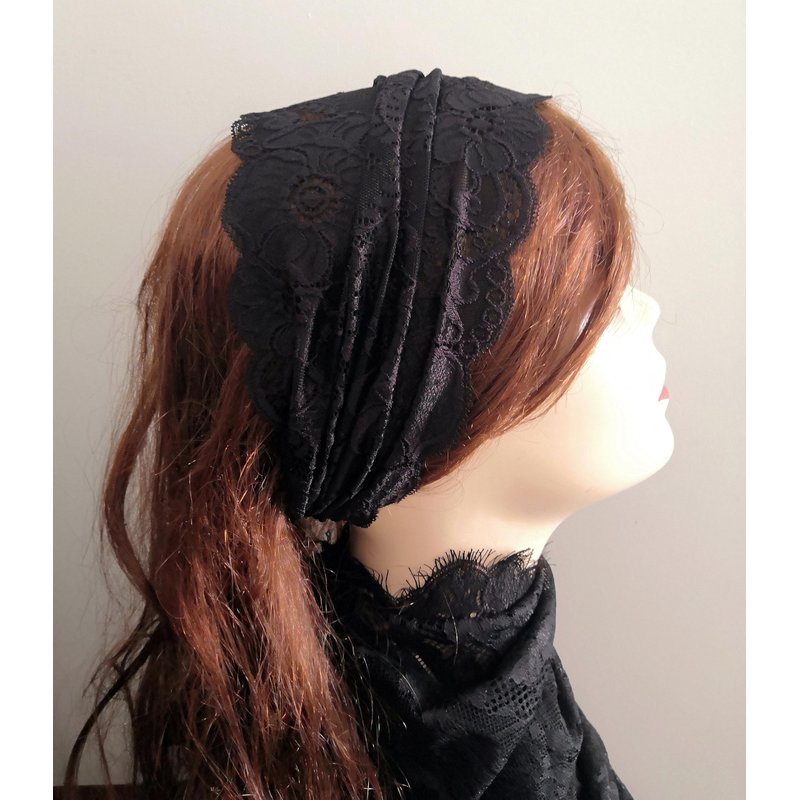 Oyabridal Vintage Lace Headbands for Women Elastic Lace Halloween Headband Party Accessories (Black)