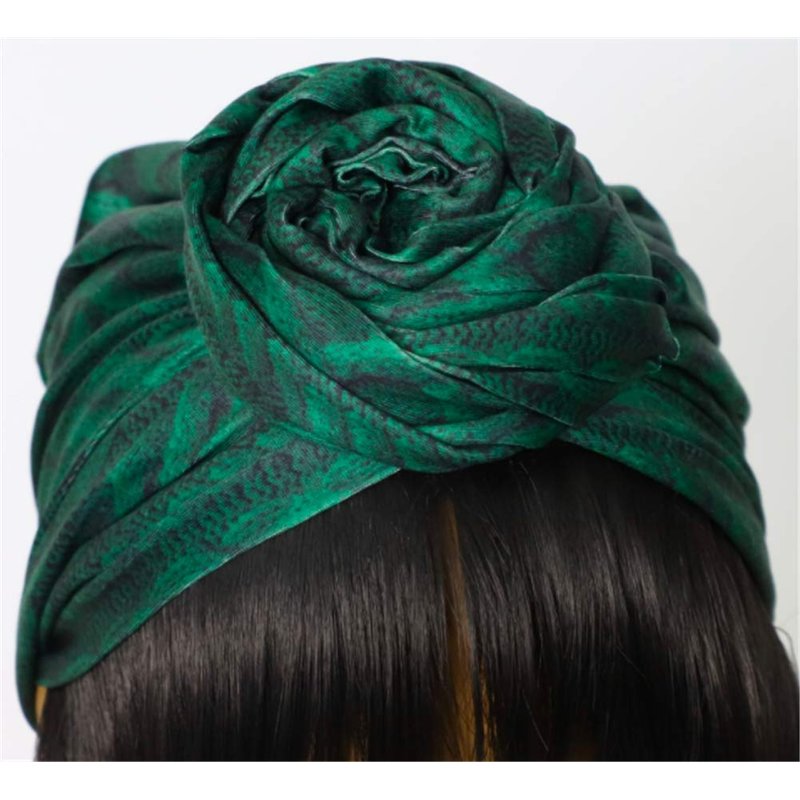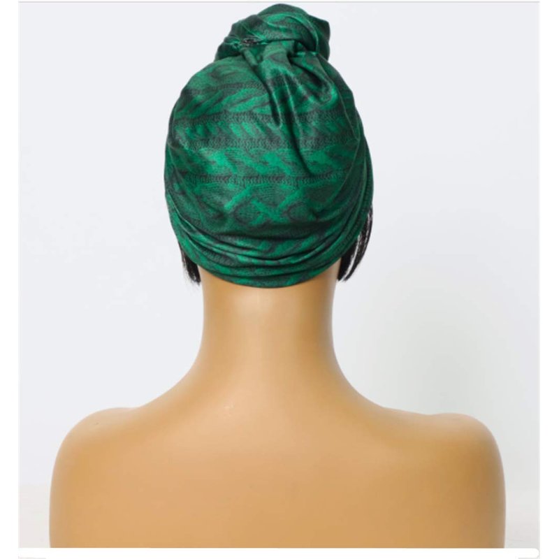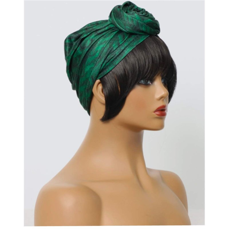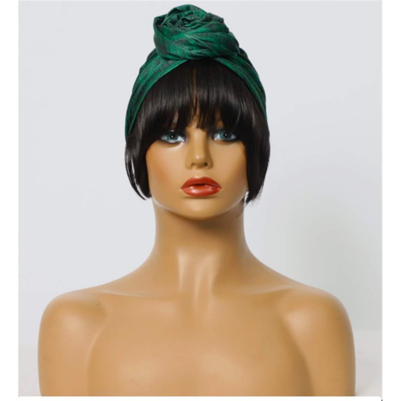 OYSRONG Short Black Color Straight Headband Afro Wig With Green Headband Attached Wigs With Turban Head-wrap Wig