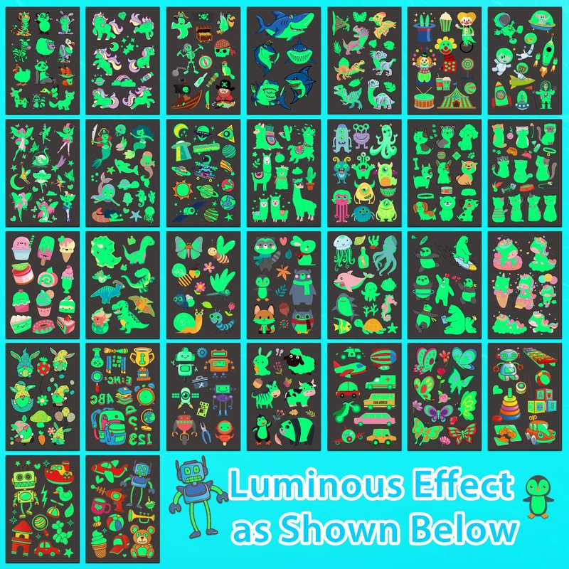 Versatile Usage: These fantastic tattoos are perfect for a multitude of occasions, including birthday parties, decorations, party favors, gift bag fillers, DIY projects, school carnivals, summer festivities, pool and beach activities, and as delightful gifts or rewards for kids. Glow in the Dark: These tattoos absorb sunlight during the day and glow at night.If the glow fades, re-expose them to sunlight to restore their brightness.