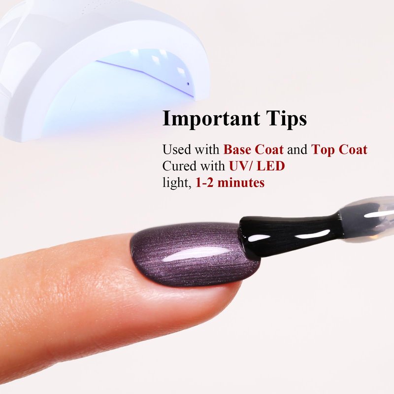- UV Gel Polish- Cure under LED/UV light for 1-2 minutes. Base and Top coat required(not included in the package).