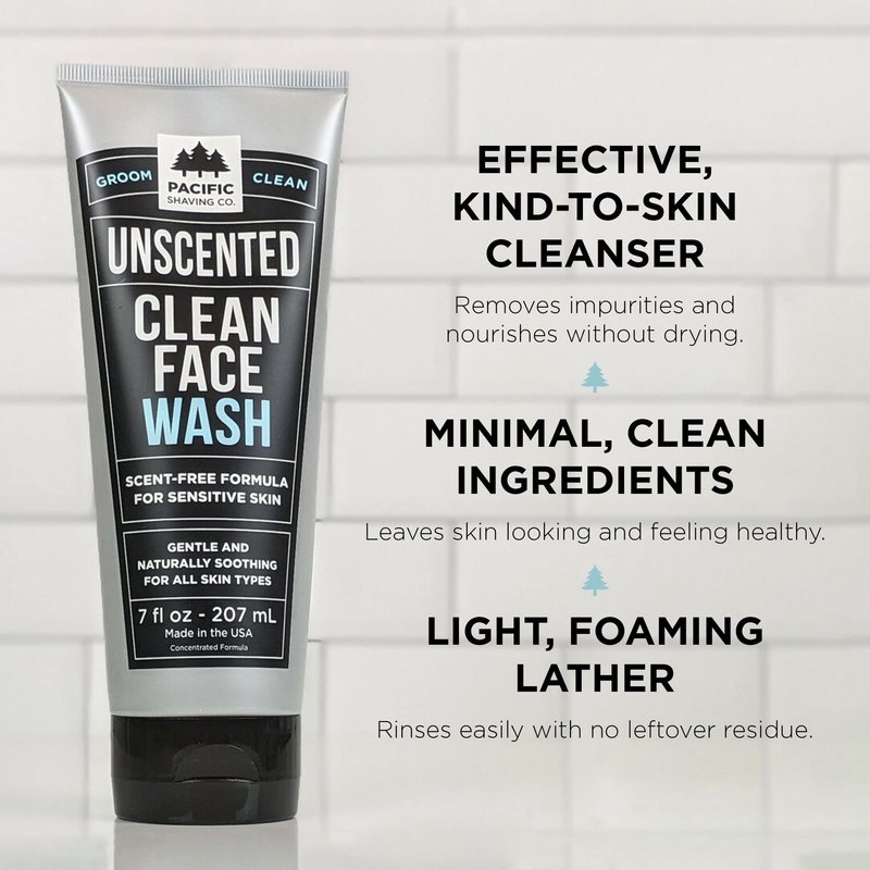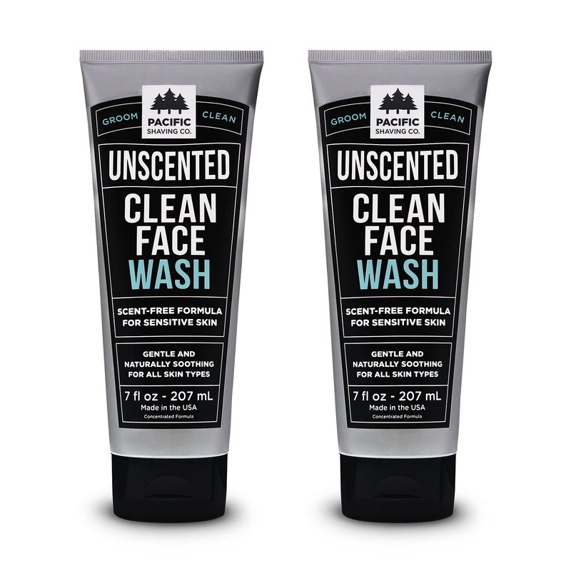 Pacific Shaving Company Clean Facial Wash - UNSCENTED | Natural Face Wash for Sensitive Skin (7 oz) - Pack of 2