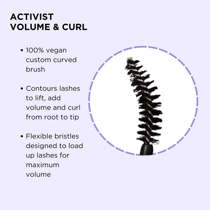 - THE BRUSH our custom Vegan Curl Activator Brush is designed to load up lashes for maximum volume. The 100% vegan curved brush with flexible bristles contours lashes to lift, add volume and curl from root to tip.