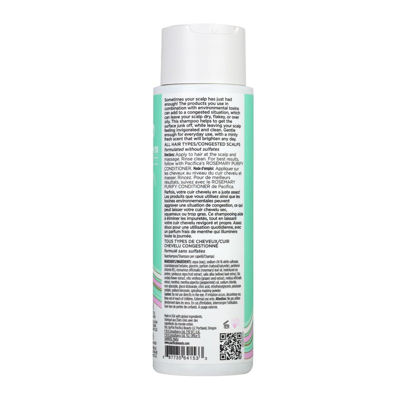 Pacifica Clarifying Shampoo – Rosemary Purify Invigorating Shampoo w/Soothing Mint for Detoxing Hair & Scalp Build-Up, Sulfate & Silicone Free - Vegan & Cruelty-Free Dermatologist Tested