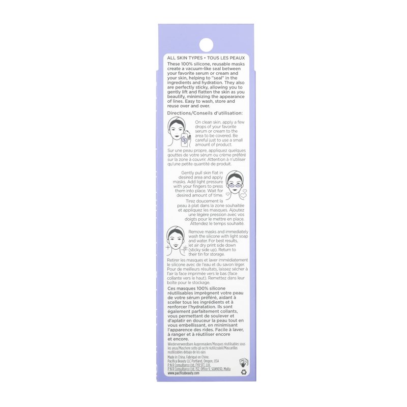 Pacifica Reusable Mask – Under Eye Mask Silicone Face Mask for Fine Lines & Dark Circles, Pair with Serum, Storage Tin Included, Vegan & Cruelty-Free, 2 Pieces