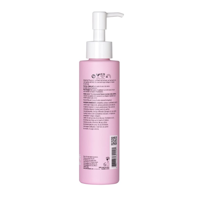 - SKIN LOVING INGREDIENTS this oil is formulated with Sunflower Oil which is known to soothe skin and strengthen the skin barrier, Borage Oil which is an antioxidant that helps promote a healthy skin barrier, Avocado Oil which helps restore and maintain hydration, and Vegan Collagen Pacifica's patented fermented peptide that helps add rich hydration, leaving you skin looking dewy and fresh.
