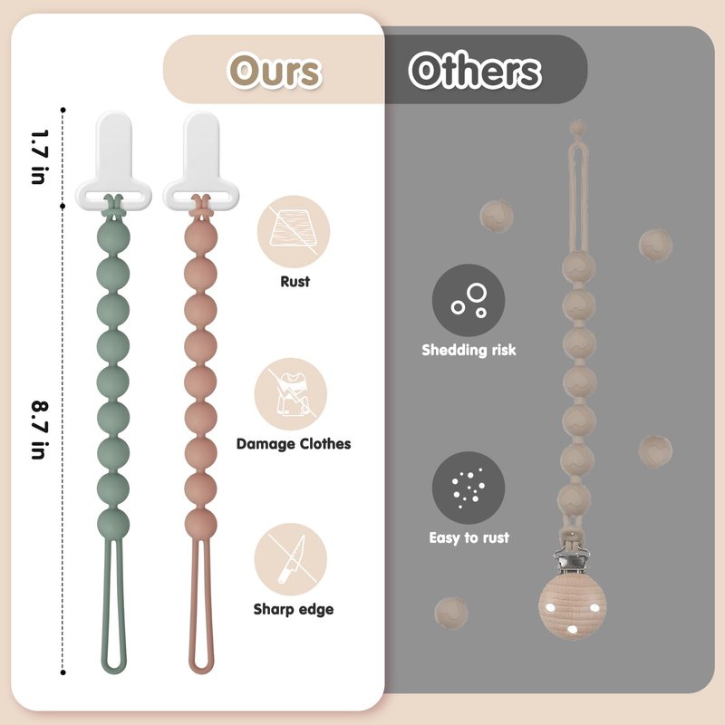 - One-Piece Design: This pacifier clip holder features a seamless one-piece silicone construction for durability and ease of cleaning.