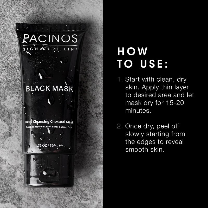 Pacinos Black Mask - Deep Cleansing Activated Charcoal Mask, Removes Impurities, Blackheads & Cleans Pores, 1.76 fl. oz.