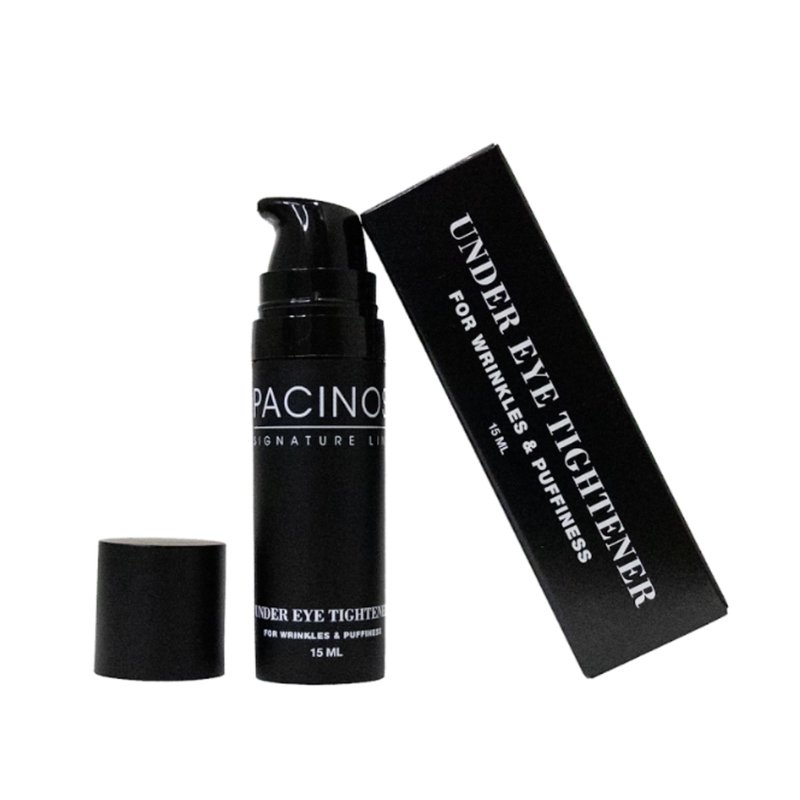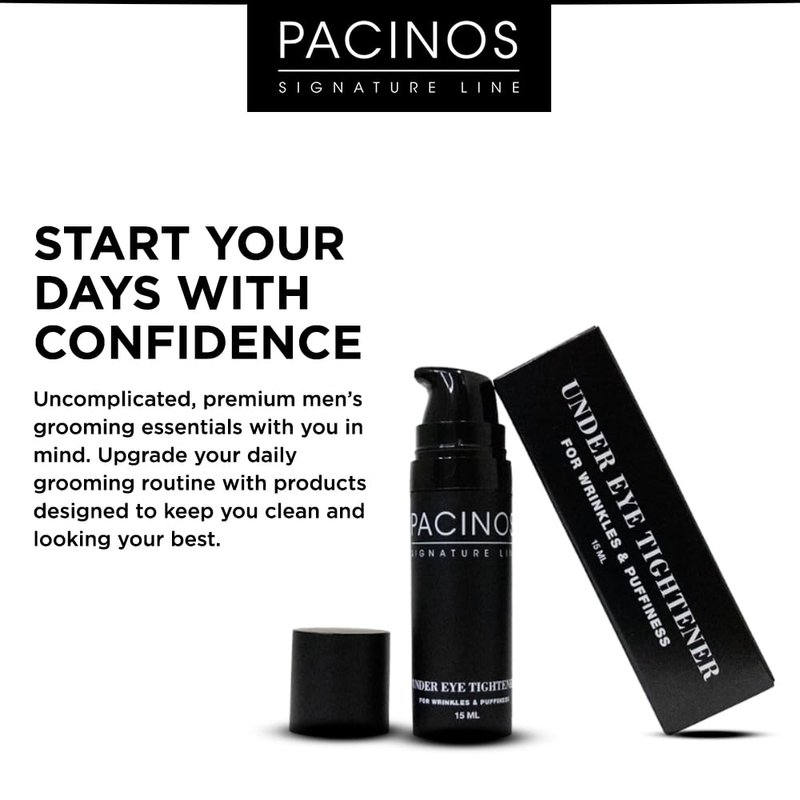 The Pacinos Under Eye Tightener for Men is a targeted daily eye cream that helps to temporarily reduce the visible signs of aging including fine lines and wrinkles that can beset the delicate skin around and under the eyes. It also helps to reduce puffiness and dark circles around the eye area. Pat onto clean, dry skin after cleansing and shaving and before moisturizing as part of your daily skincare routine