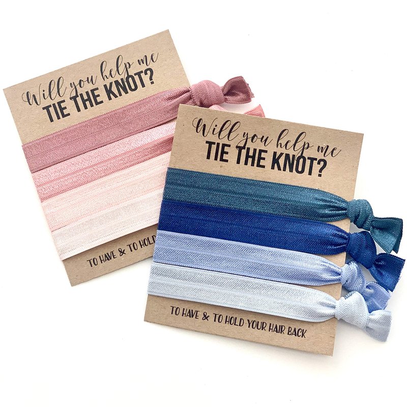 - Each card comes with 4 hair ties on a Will you help me tie the knot card.