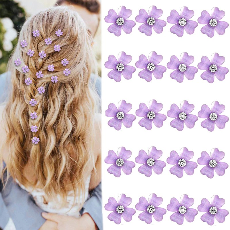 - Quantity And Size: You can get twenty small purple hair clips. Dreamy sparkling purple crystal hair clips can perfectly match your ponytail updo and braided hair. This hair clip is only 0.78 inches so it won't feel out of place when decorating your hair. Because of the mini size you can also use it to dress up your dog or doll.