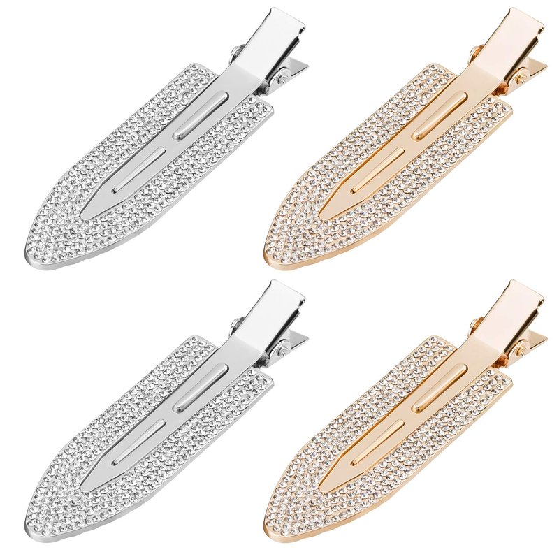 - Clips for Hair: The no bend hair clips packed 4 pieces, including 2pcs gold and 2pcs silver, which is of personalized shiny rhinestone design. Our rhinestone hairpins will not cause wrinkles to your hair and matching for a fashionable look.