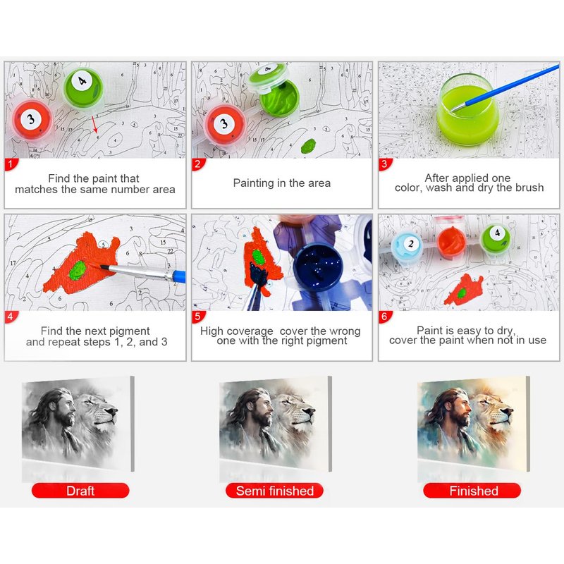 Paint by Numbers for Adults Jesus Christ Paint by Numbers Kit Lion of Judah Canvas Art DIY Paint by Numbers for Adults Kids Paint by Numbers for Adults Beginner Home Decoration Wall Art 16x20 in
