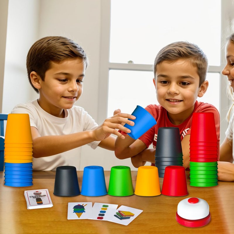 - Quick Stacking Cups Game promises fast-paced fun, with players stacking cups and matching cards in a thrilling race against time.