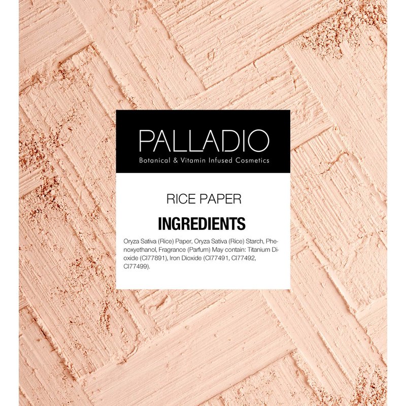 - RICE PAPER BLOTTING TISSUES: Made from natural rice, Palladio's rice paper sheets are great for absorbing excess oil & keeping your face & makeup looking fresh & clean all day—at home or traveling. Comes in compact packaging & in multiple skin tones.