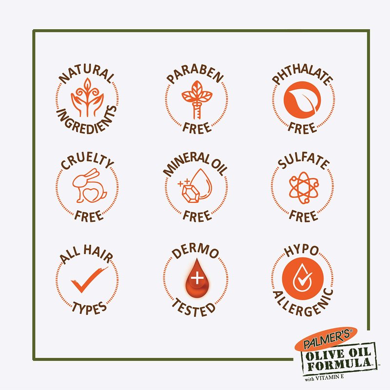 - Color: The Palmers olive oil formula smoothing shampoo enriched with extra virgin olive oil, hair keratin amino acids, and vitamin e which provide hair strength, and an excellent shine, also cleans the hair thoroughly by removing the product build up.
