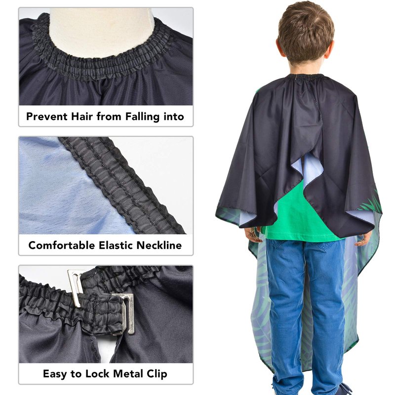 • Adjustable Snap Closure - 47.2"x37.4"(120cm x 100cm), the haircut cape kids is long enough to give full coverage for kids' clothes no matter they sit or stand. With an adjustable metal buckle, it can fit any neck sizes, comfortable to wear, easy to adjust tightness as need, great to make child relaxed and happy while hair cutting.