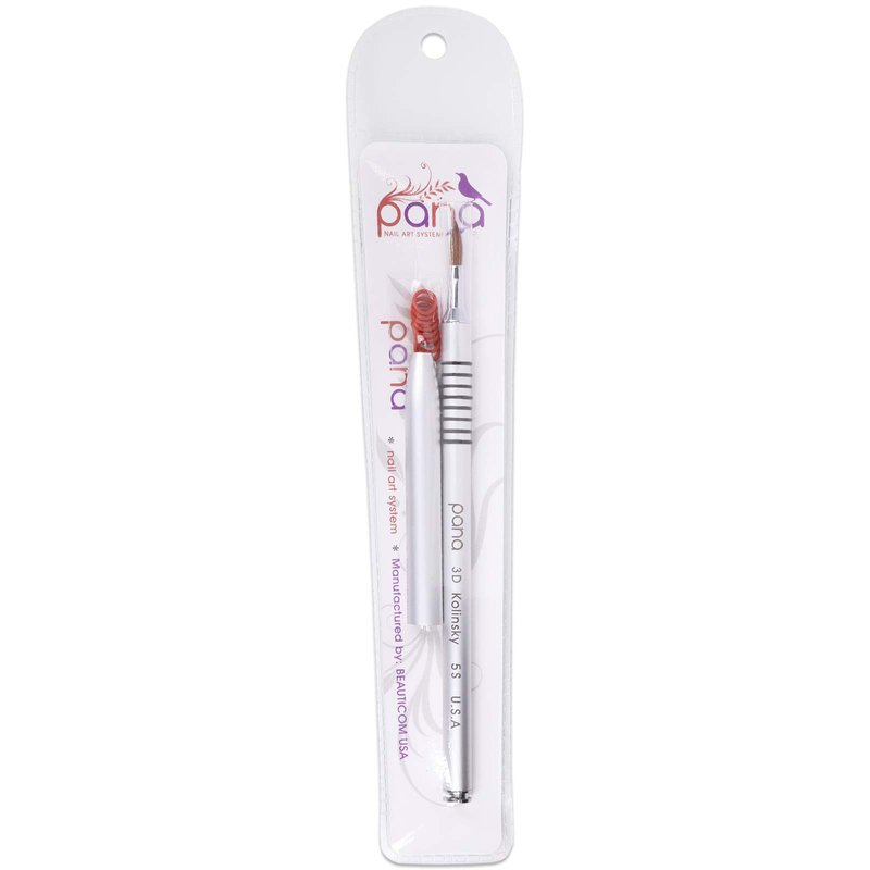 - PANA 3D Nail art brush with a brush size #5 has a 100% kolinsky hair bristle that will ensure that the brush itself will not fray or shed on its own. It also has a high graded silver metal handle with a cap for keeping the brush clean when not in used, it also includes interchangeable rubber rings that easily slides onto the handle for a non-slip grip handle.