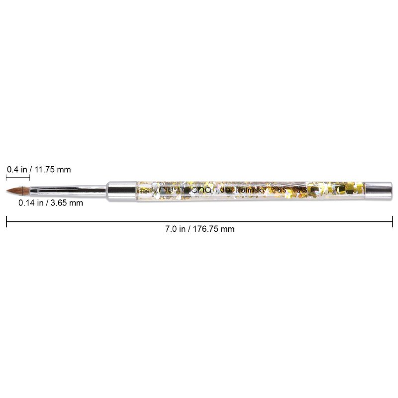 PANA 3D Kolinsky Nail Art Brush - Gold Glitter Handle, Size 5 - Acrylic Nail Art Sculpture Brush for Manicures Pedicure Salon Professional or Beginner