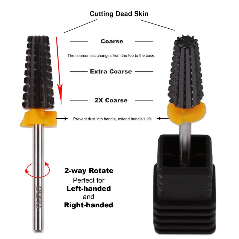 PANA Nail Carbide 5 in 1 Bit - Two Way Rotate use for Both Left and Right Handed - Fast remove Acrylic or Hard Gel - 3/32" Shank - Manicure, Nail Art, Drill Machine (Double Coarse - 2XC, Black)