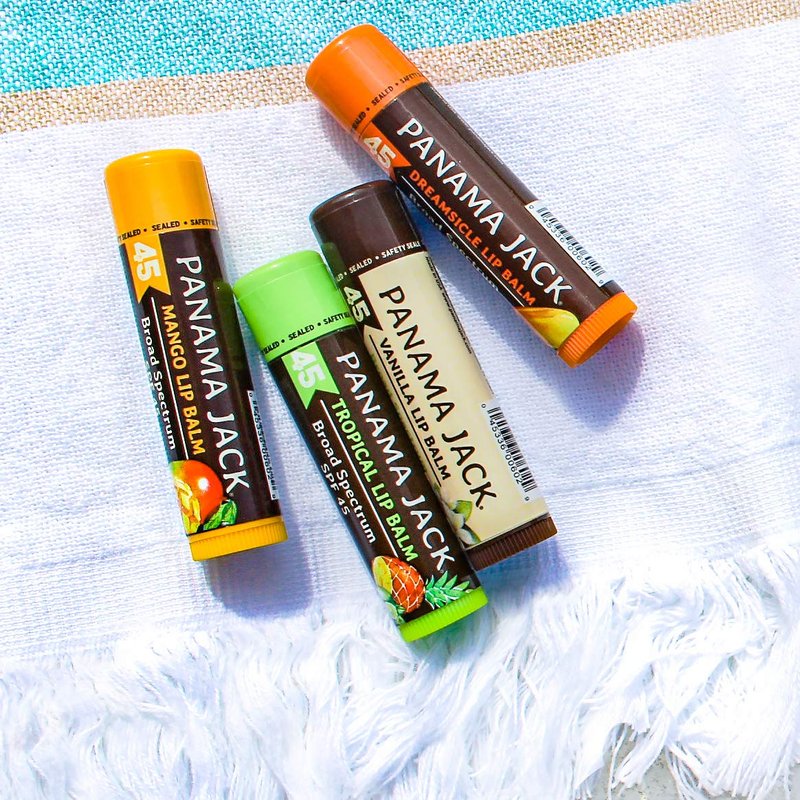 MULTI-ACTION FORMULA: Escape Everyday...Made with Love, Care and Pride since 1974, our Panama Jack SPF 45 sunscreen lip balms are non-waxy/sticky, goes on smooth, offer broad spectrum UVA-UVB sun protection, and tastes amazing! SOOTHES DRY, CHAPPED LIPS: Helping to prevent sunburn, our lip balms are perfect for sensitive skin or those that have a tendency to get fever or sun blisters. BROAD SPECTRUM SUNSCREEN: With SPF 45 (Sun Protection Factor), this Panama Jack UVA-UVB sunscreen lip balm is the ultimate all season chapped lip stick. 0.15 OZ (4.25g) easy-to-grip consumer-friendly bottle with adjustable dispensing knob. Use often and reapply after toweling dry, prolonged swimming, or excessive perspiration. SUN PROTECTION MEASURES: Spending time in the sun increases your risk of cancer and early skin aging. To decrease this risk, regularly use a sunscreen with a broad spectrum SPF of 15 or higher and other sun protection measures including wearing hats and sunglasses. AVAILABILITY: Choose from four flavors (dreamsicle, mango, tropical and vanilla).
