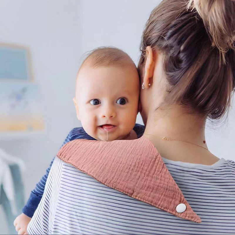 - [ 100% Soft and Absorbent Cotton Bibs ]: These baby drool bibs are made of 100% absorbent cotton. The four layers design absorbs all the drool without soaking outfit.