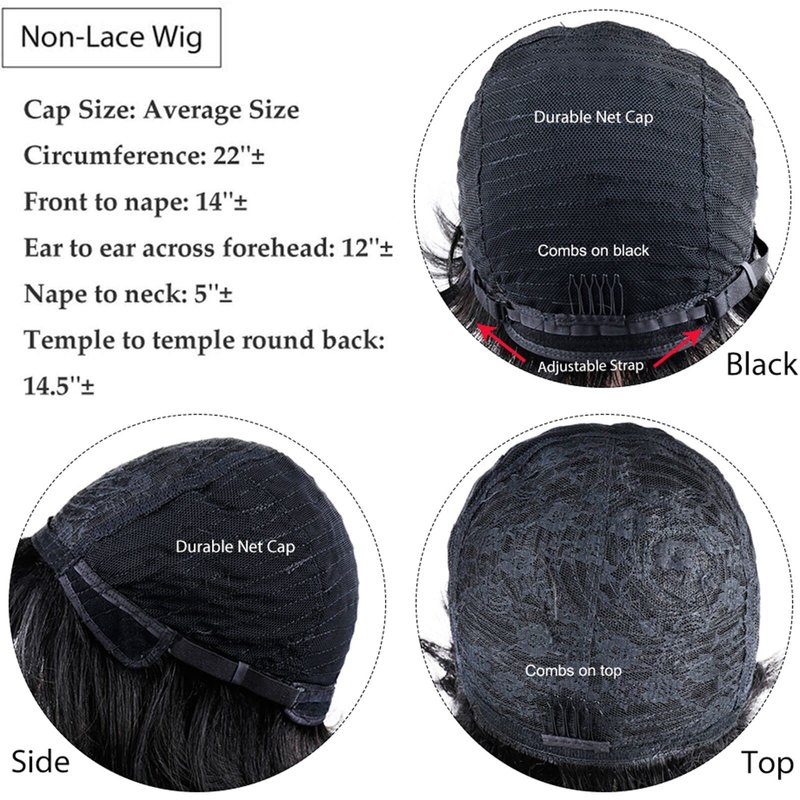 - Cap Size And Details:Full Machine Made Wig ,Fit for all skin .Standard Cap Size:Medium(22.5 Inch) , Adjustable elastic Strap And 2 Combs. Easy To Adjust, Wear Comfortable