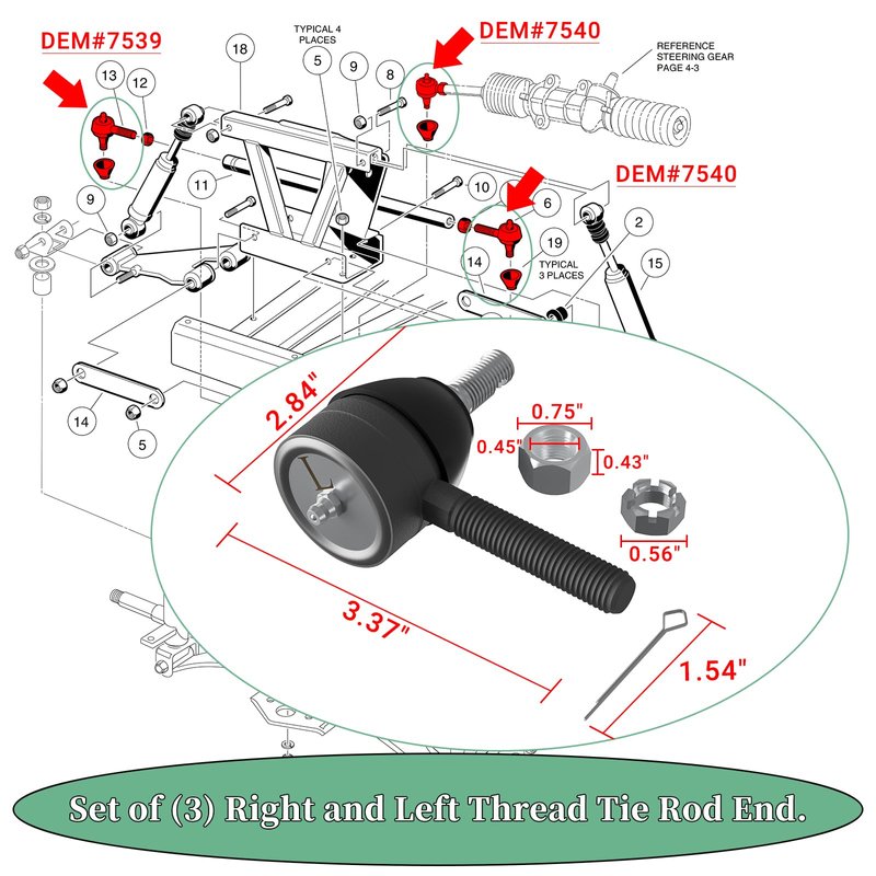 - 【OEM Reference】Ball Joint Left-Hand Thread (included 2 Pcs), OEM #7540; Ball Joint Right-Hand Thread (included 1 Pc), OEM #7539.