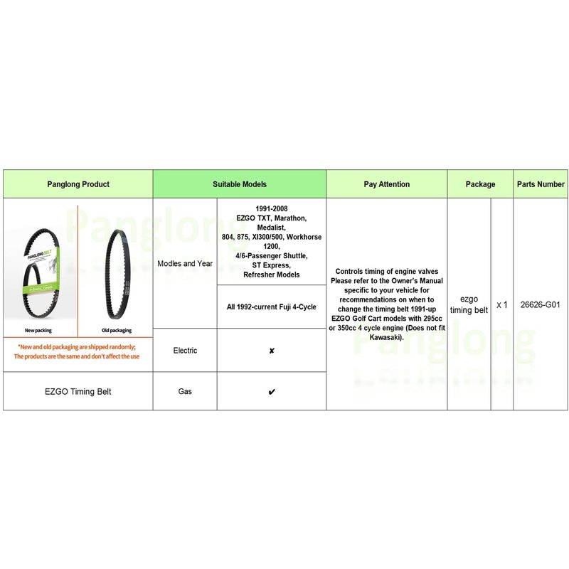 Panglong EZGO Timing Belt Gas Golf Cart 1991-up 295cc & 350cc 4 Cycle Engine 26626-G01