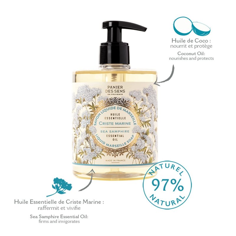 Panier des Sens - Marseille Liquid Hand Soap – Sea Samphire Hand Wash - Moisturizing Soap with Coconut Oil - Bathroom & Kitchen Refillable Soap - 97% Natural Ingredients Made in France - 16.9 Fl.oz