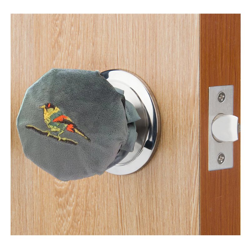 PANSHA Door Knob Cover Grey with Bird Embroidered 2 PCS, Soft Velvet Wall Protector, Decorative Door Knob Cushion Not to Dent Applicances