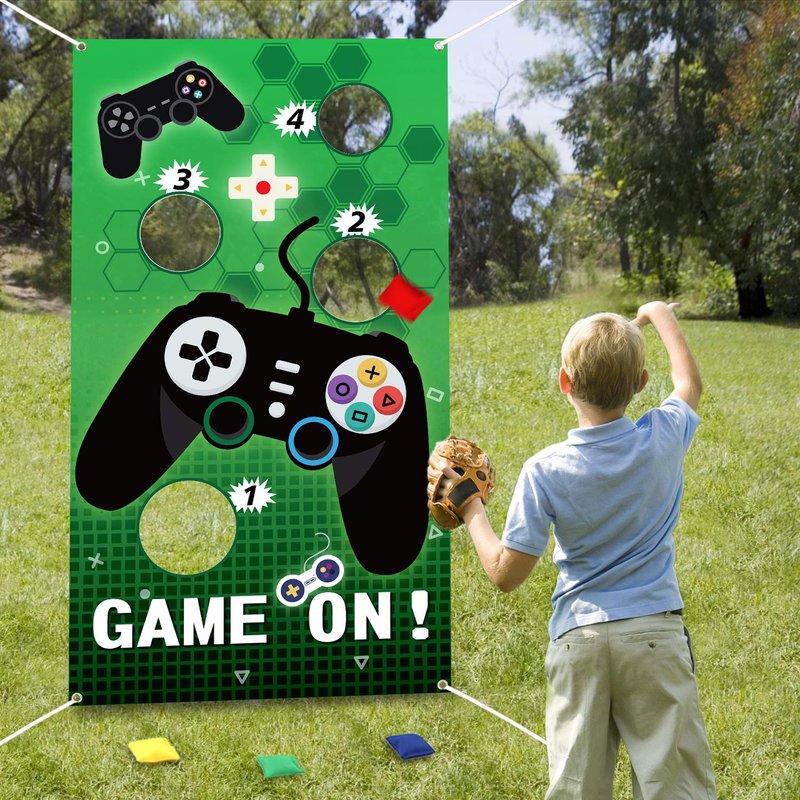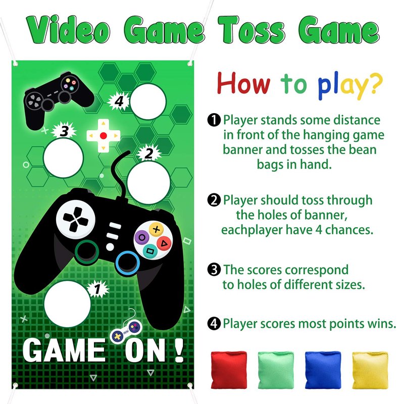 - [Funny Game On Throwing Games] Bean bag toss game is popular with kids and it is an excellent party games for the party. It could not only kill kids’ time but also brings kids and adults more fun. Besides, this game is not limited by place, you can set it as indoor or outdoor game! Our toss game banner is game on themed banner which is specially designed for video game party. If you are going to throw a video themed party, do not hesitate to choose it!
