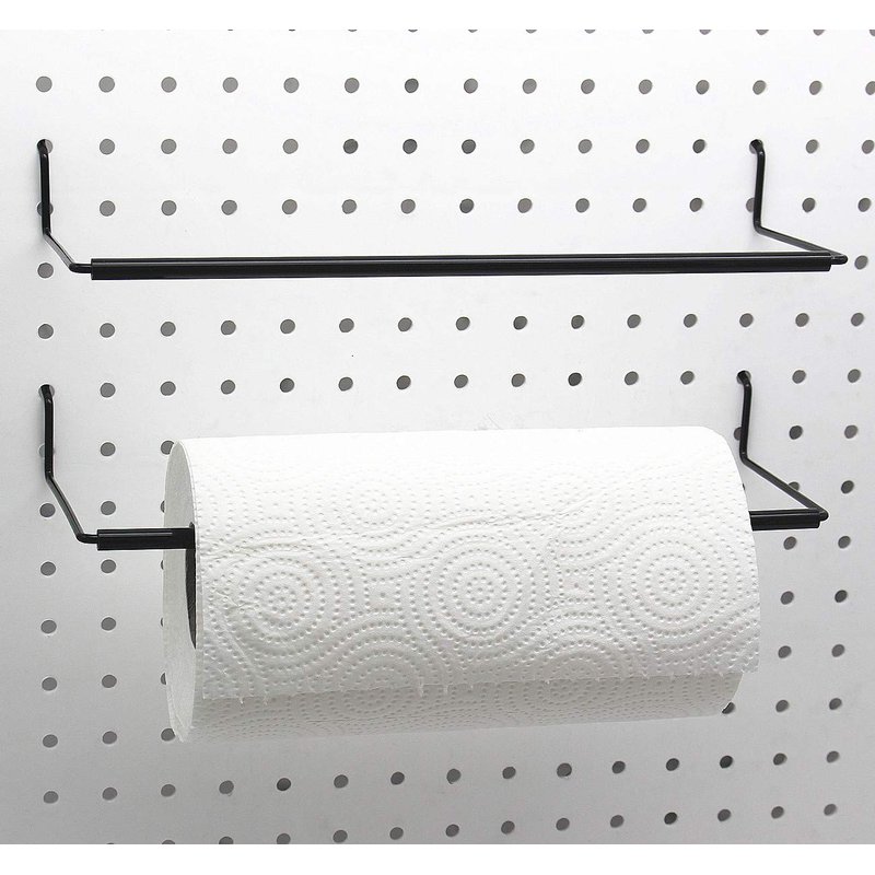 Paper Towel Holder for Pegboard, Extendable, Fit Any Standard Pegboard, Pegboard Organization Accessory Hook for Workshop, Garage, Kitchen, Laundry Room, Bathroom 2 Packs, Black (2 PCS)