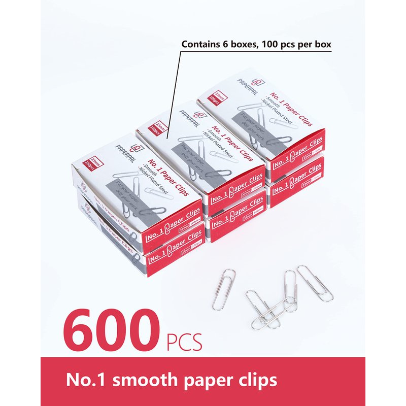- ๐600 pcs - Contains well-packed 6 boxes of No.1 smooth paper clips, 100 pcs each.