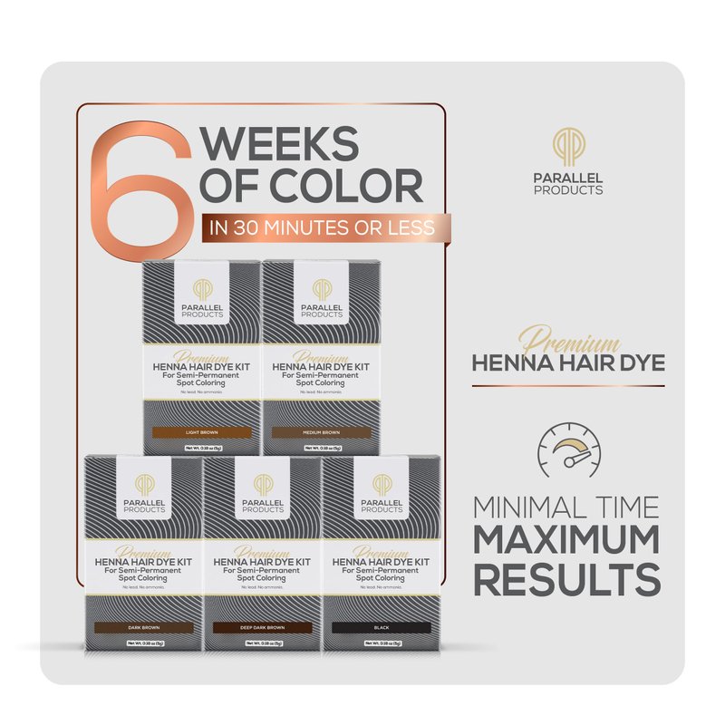 Premium Henna Hair Dye for Spot Coloring is available in multiple shades to ensure you can achieve the color you’re looking for! Our standard color options are Light Brown, Medium Brown, Dark Brown, Deep Dark Brown, and Black. Still looking for more options? Feel free to get creative and mix any standard colors to make something unique to you!