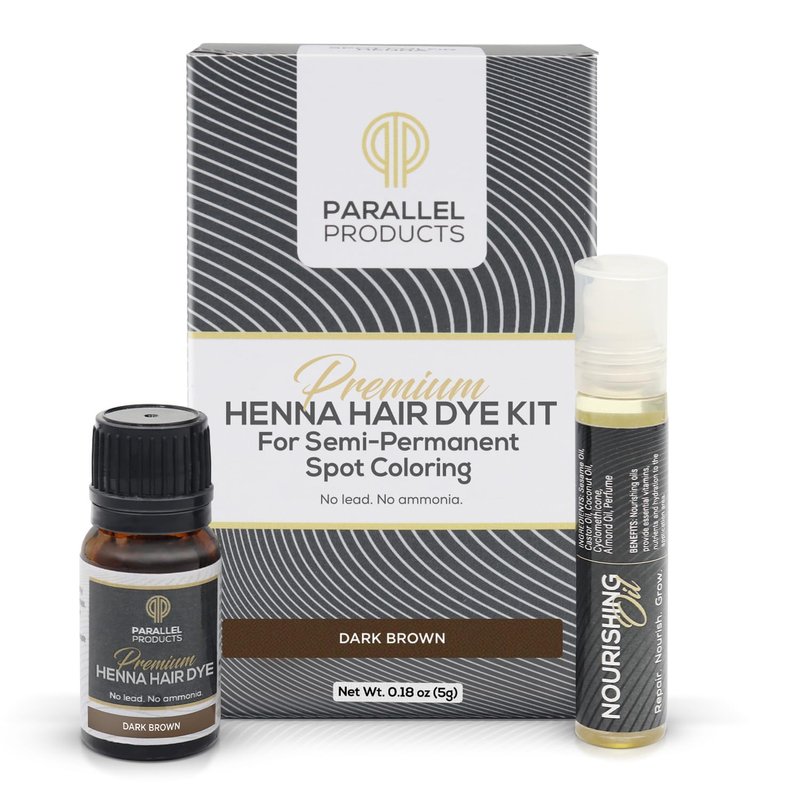 Parallel Products Spot Color Henna Kit - Henna Hair Dye - 5 Grams - Tint for Professional Spot Coloring - with Nourishing Oil, Mixing Dish and Application Brush - Root Touch Up (Dark Brown)